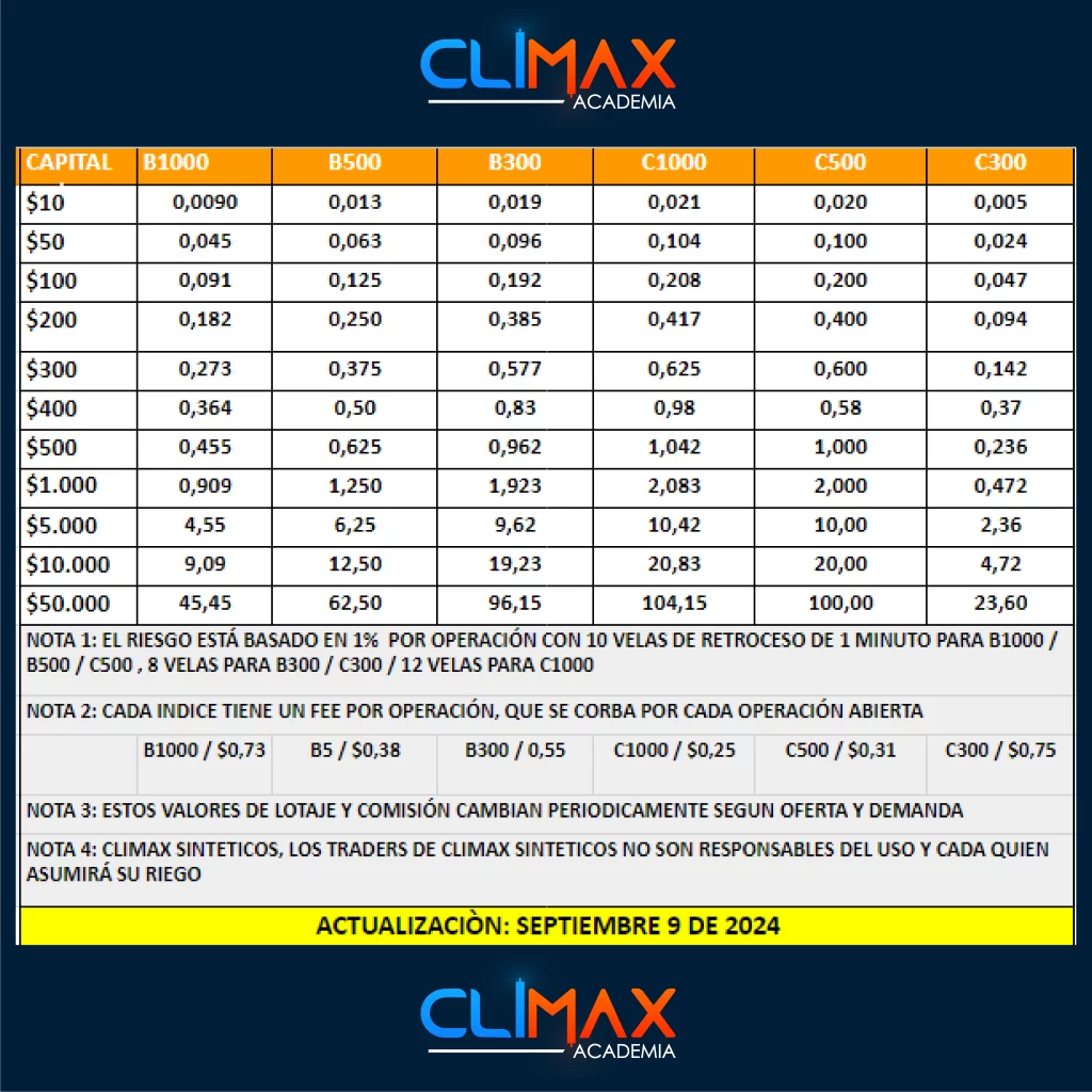 - Deriv actualiza frecuentemente su algoritmo y por ende los lotajes están en constante movimiento.
